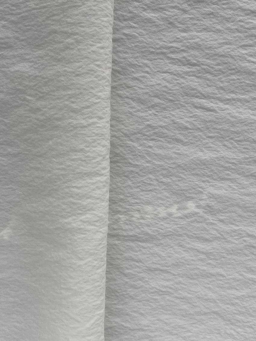 Warp: nylon yarn, Weft: spun silk yarn.