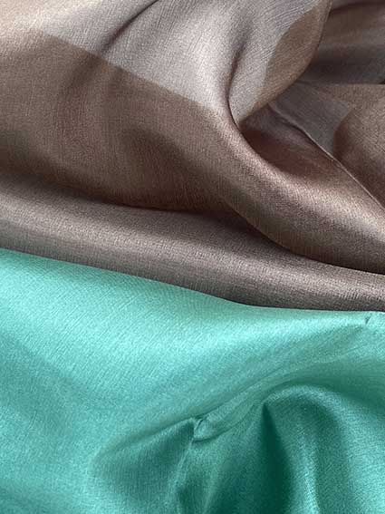Warp: 1/20/22D, weft: 1/20/22D raw silk.